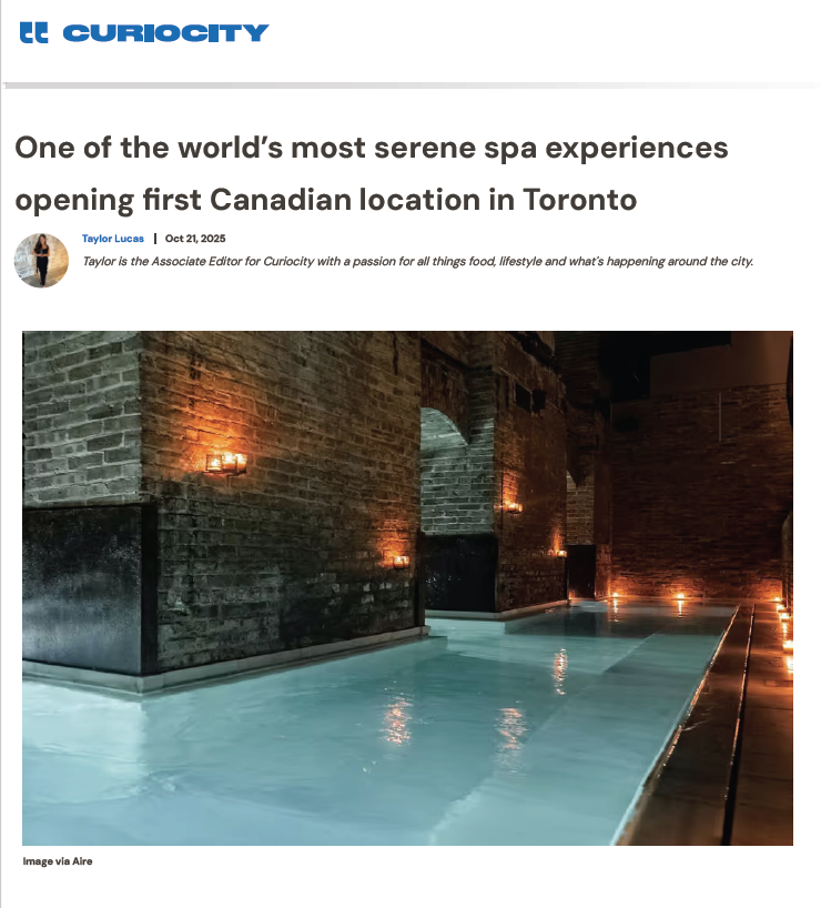 Tucked away in the heart of Toronto, Aire Ancient Baths invites guests into a sanctuary of serenity inspired by ancient Roman, Greek, and Ottoman traditions. Housed within a beautifully restored heritage building, this urban oasis blends timeless architecture with contemporary elegance. Guests are immersed in an atmosphere of candlelight, silence, and stillness, where thermal baths, exclusive massages, and signature rituals offer a transformative wellness experience. Opening soon, Aire Ancient Baths Toronto will redefine relaxation in the city, a place where time slows, and the senses awaken.