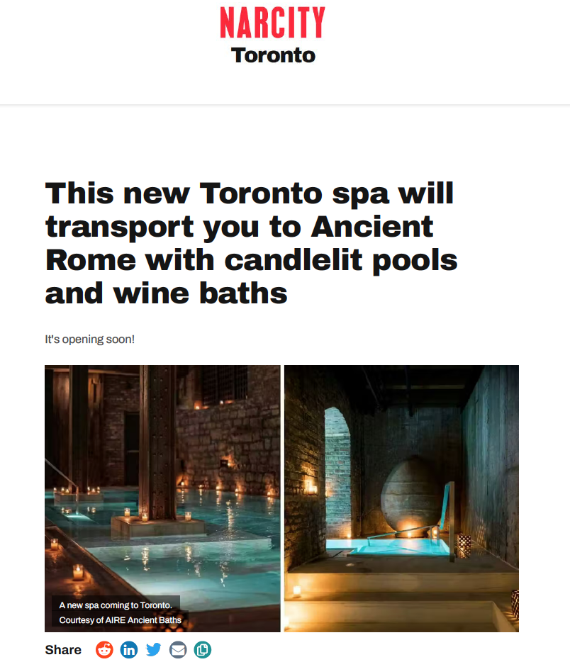 Narcity: This new Toronto spa will transport you to Ancient Rome with candlelit pools and wine baths